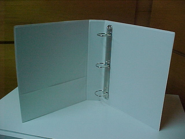 Carpetas comerciales tamaño carta o A4 confeccionadas con proceso especial de adhesivado en la contratapa entre el cartón y la tela plástica lo que evita la entrada de aire y posterior deformación de las carpetas. Remaches y anillos de acero. Un bolsillo de formato horizontal en la retiración de tapa y cubierta cristal en tapa y lomo abierta arriba para insertar láminas. |
